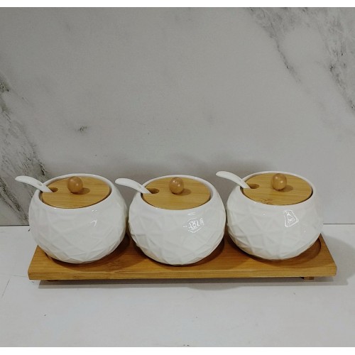 SET DULCERA/AZUCARERA X 3 UNID. CERAMICA/BAMBU