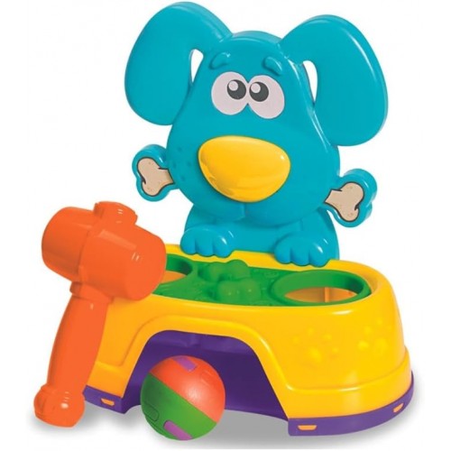 Contenido del Paquete: Incluye la base con forma de perro, 1 martillo liviano y 2 pelotas de colores.