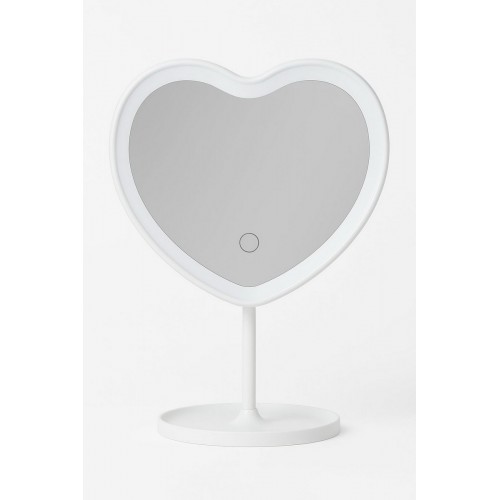 ESPEJO DE PIE CON LUZ LED USB CON BANDEJA PORTAOBJETOS CORAZON