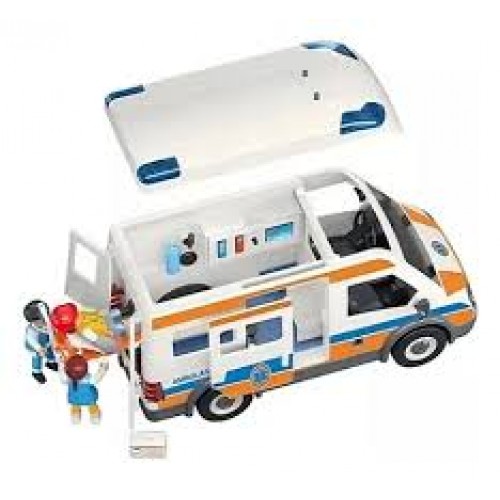 Contenido: 1 Ambulancia, figuras de médicos, camilla y accesorios.