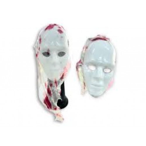 Máscara blanca con velo manchado con sangre. Material: plástico y tela. Pack x 1 unidad. Estos tipos de máscaras están compuestas por un plástico cómodo y resistente, que no se deforma con facilidad. Ideales para halloween, carnaval carioca, cumpleaños infantiles, tandas temáticas halloween, como accesorio para disfraces y para todo tipo de festejos.
