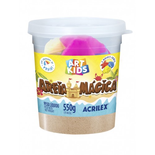 Ideal para jugar en casa, en la escuela o durante viajes, la Arena Mágica Acrilex es segura, no tóxica y muy fácil de limpiar.