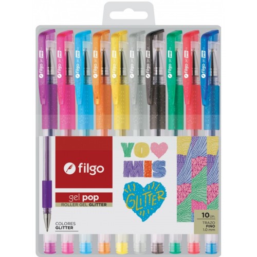 Bolígrafos Roller Gel Pop Glitter Filgo x 10: ¡Haz Brillar tus Ideas!