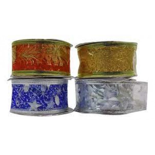 Cinta Navideña 38Mm Con Detalles Metalizados(2Mts)-Varios Colores