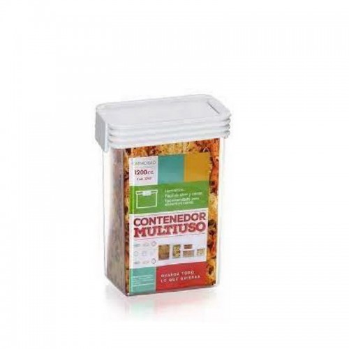 Contenedor Acrílico Hermético Rectangular de 1200 cc (1,2 litros), diseñado para la organización de alimentos en la cocina o alacena.