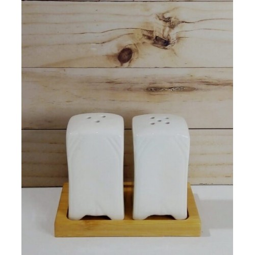 CONDIMENTERO X 2 SALERO Y PIMENTERO DE CERAMICA CON BASE DE BAMBU
