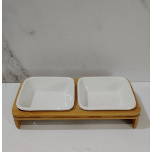 COPETINERO DE CERAMICA X 2 CON BANDEJA DE BAMBU