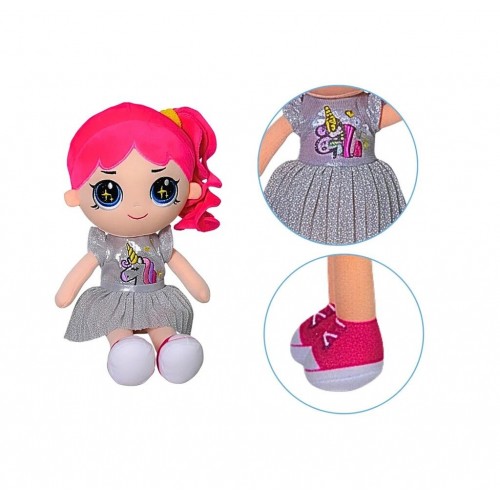 Fabricada con materiales suaves y seguros, esta muñeca de tela es el regalo ideal para estimular la imaginación, fomentar el apego y garantizar horas de diversión y mimos.