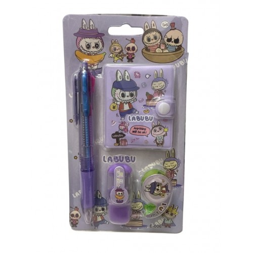 SET ESCOLAR LIBRETA + BOLIGRAFO + CINTA + RESALTADOR LABUBU/CAPYBARA