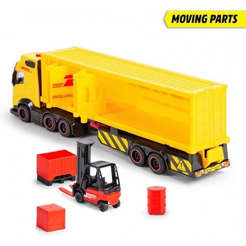 CAMION CONTENEDOR DHL HEAVY TRUCK CON AUTOELEVADOR CON LUZ Y SONIDO DICKIE TOYS