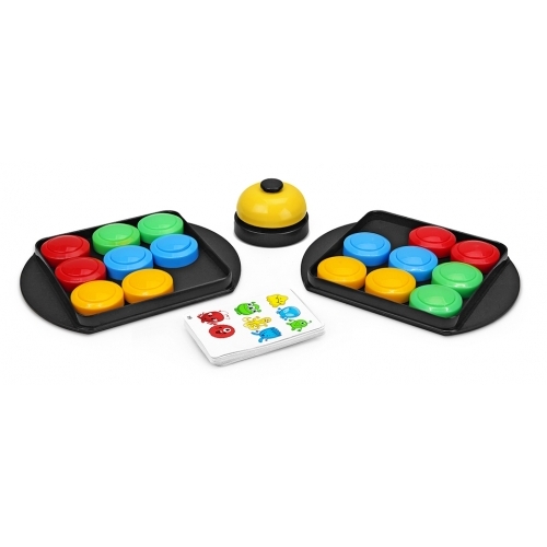 Deslizá los discos de colores por el tablero para que coincidan con la imagen de la tarjeta y tocá el timbre antes que tu oponente. El primer jugador en resolver los 5 desafíos, gana.