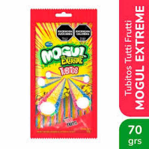 Los Tubitos Extreme de Mogul son una experiencia intensa para tu paladar. Estas deliciosas gomitas con forma de tubo combinan la textura blanda y masticable clásica de Mogul con un recubrimiento extra ácido que despierta tus sentidos antes de dar paso al inconfundible y dulce sabor a Tutti Frutti.