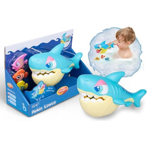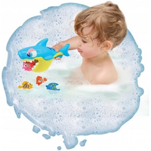 ¡Este increíble tiburón mordedor puede convertir la hora del baño en una actividad divertida! El juego incluye un tiburón capturador y tres peces incluidos. Estos peces son peces flotantes realistas ya que ¡Nadan verticalmente! cuando el bebé se baña, el bebé puede presionar el gatillo e intentar atrapar peces a lo largo de la bañera.