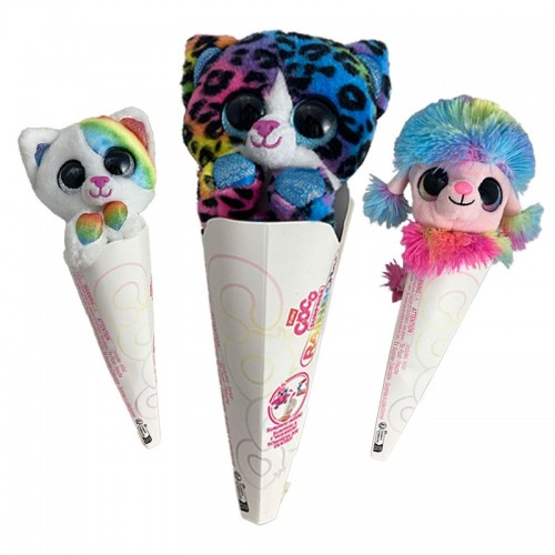 ¡Descubre la magia y el brillo de los Coco Cones Rainbow Collection de Zuru! Estos adorables peluches sorpresa vienen escondidos dentro de un cono de helado gigante y perfumado. Cada cono esconde un amigo suave y tierno con detalles de lentejuelas reversibles, listo para ser tu nuevo mejor amigo.