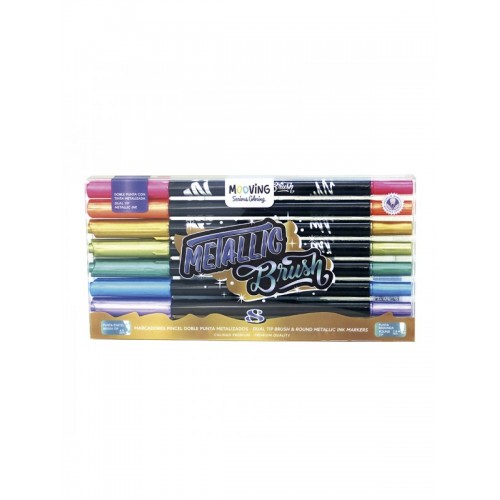 MARCADORES DOBLE PUNTA PINCEL METALIZADOS MOOVING X 8