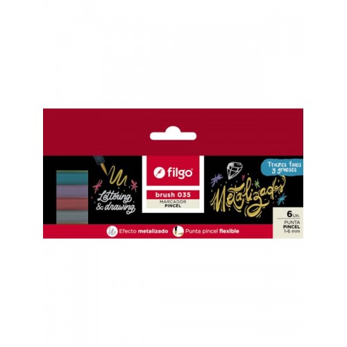 FIBRAS X 06 FILGO PUNTA PINCEL BRUSH LETTERING EFECTO METALIZADO