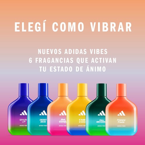 Fragancia Eau de Parfum Adidas Vibes Get Comfy Un Eau de Parfum relajante y reconfortante de larga duración que se ha demostrado que transmite energía positiva.