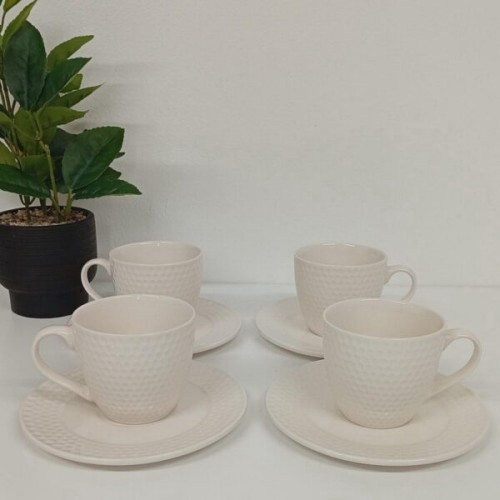Juego de Café x 4 Tazas de Cerámica + Platos Línea Panal White