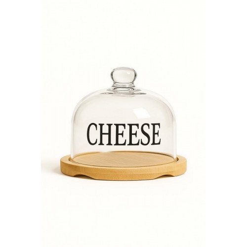 CAMPANA PARA QUESOS VIDRIO BASE DE BAMBU REDONDO CHICO