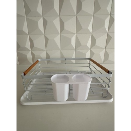 SECAPLATOS ESCURRIDOR DE PLATOS PARA 10 PLATOS BLANCO CON BANDEJA MANIJA BAMBU