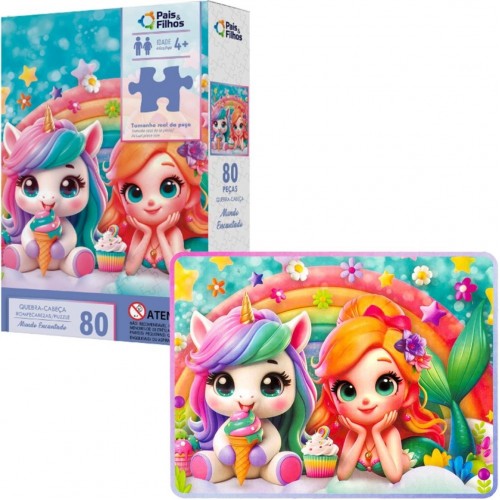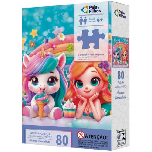 El rompecabezas del Reino Encantado de Pais e Filhos es perfecto para brindarles a los niños momentos de diversión y aprendizaje. Con una encantadora imagen de un unicornio, una sirena, un arcoíris, un helado y dulces, este rompecabezas estimula la creatividad y la imaginación, a la vez que desarrolla habilidades importantes como la concentración y la coordinación motora.