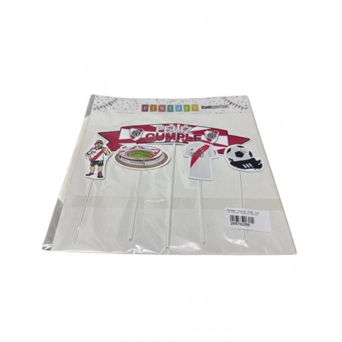 Adorno pinche cartel Feliz cumple con diseño de river Plate. Medida: 17 cm aprox. cartel feliz cumple con pinche y 12 cm aprox. los 4 diseños con pinche. Material: cartón. Se vende por 1 unidad. Ideal para cumpleaños infantiles. Se puede utilizar para decorar tortas, centros de mesa, candybar.