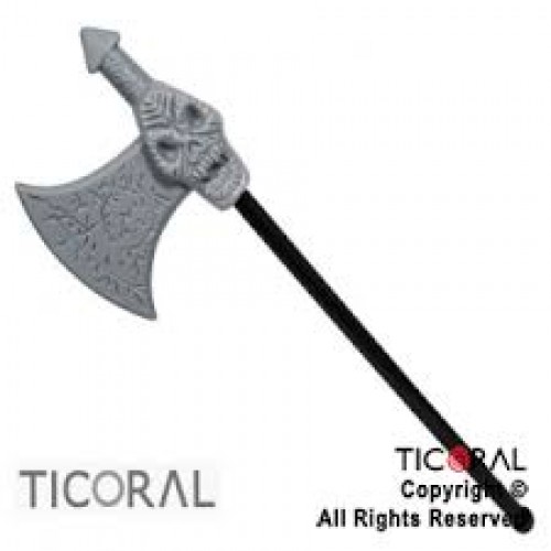 Hacha simple chica es de color gris color imita al metal y el mango negro. Tiene una calavera en el medio. Material: plástico. Mide 40 cm. Ideales para disfraces, cumpleaños, carnavales carioca o tandas temáticas de piratas o medieval.