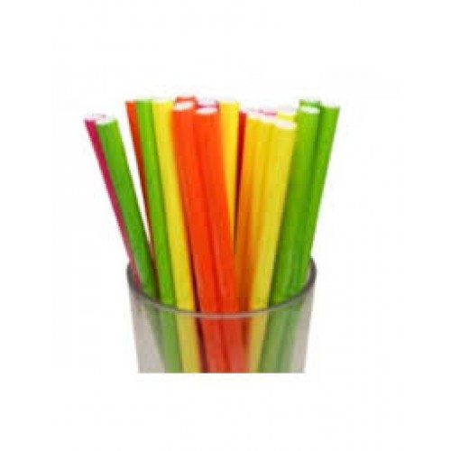 Sorbetes o pajitas de polipapel fluo neon. Miden 20 cm. de largo. Colores surtidos fluo (amarillo,verde, naranja, rosa). Contiene 1 paquetes de 24 unidades.