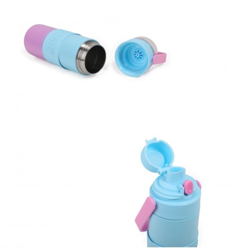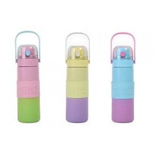 Combinación de funcionalidad y color. Tapa con traba de seguridad y boquilla a presión. Incluye manija rígida para transportar cómodamente. Goma soft touch con diseño personalizado. Ideal para entrenamiento