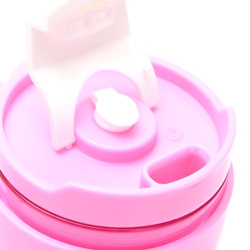 Para hacerlo único, el vaso incluye un set de stickers de goma con relieve que permiten personalizarlo con un toque divertido y original. Disponible en delicados tonos rosa y lila, es el accesorio ideal para llevar al colegio, la oficina o el gimnasio, sumando color a tu rutina.