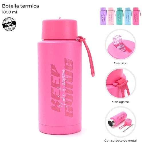 BOTELLA DE ACERO INOXIDABLE SKORA 1000 ML ART 40589 CON PICO FLIP Y SORBETE