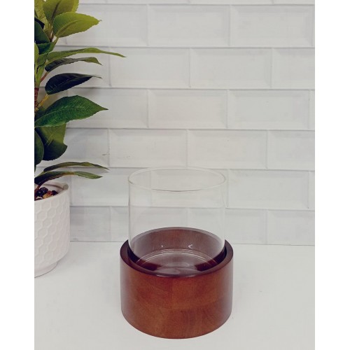 PORTAVELAS FANAL DE VIDRIO BASE COFFEE BAJO