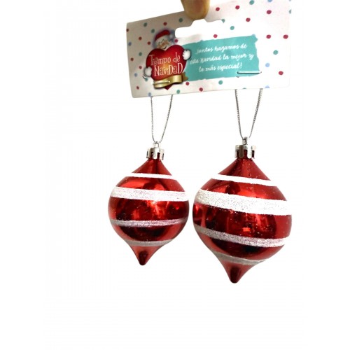 Set X2 Trompos Colgantes De 7Cm Con Lineas Glitter-Rojo