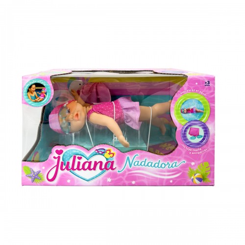¡Llevá la diversión a la piscina o a la bañera con la Muñeca Juliana Nadadora! Esta increíble muñeca interactiva está diseñada para acompañar a los más chicos en sus aventuras acuáticas. Gracias a su mecanismo especial, Juliana puede nadar de forma autónoma, y este set viene súper completo con toalla y antiparras para que la experiencia sea total.